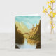 naipes con un romántico paisaje de fantasía de dos castillos en las montañas con un puente que los conecta a través de una cascada.