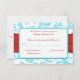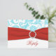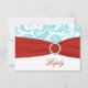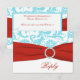 Esta tarjeta de respuesta de damasco floral azul aguamarina y blanco tiene una cinta ROJA IMPR ESA y una hebilla de joya IMPR ESA que coincide con la invitación de boda que se muestra a continuación. TAMBIÉN, si cambia el tamaño de la tarjeta, o si cambia las fuentes, o el tamaño de la fuente, parte del diseño y/o texto puede cortarse. Todo se imprimirá como lo ve en su monitor. No veré su invitación, y Zazzle NO corregirá nada (errores tipográficos, desalineación, etc.). El texto y el papel son totalmente personalizables. Si necesita ayuda con esta invitación, por favor envíeme un correo electrónico ANTES de realizar su pedido. Si necesita otros artículos que coincidan, por favor envíe su solicitud a niteowlstudio@gmail.com.