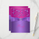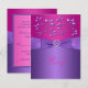 Esta tarjeta de respuesta de boda floral rosa fucsia y púrpura tiene una cinta PURPURA IMPRIMIDA y una hebilla de joyas de gema y diamantes IMPRIMIDOS que coincide con la invitación de boda que se muestra a continuación. ***POR FAVOR TOME NOTA de que no hay elementos en relieve en este diseño. Todo se imprime plano. El texto y el papel son totalmente personalizables. NO utilizaría ninguno de los papeles de colores (champán metálico, dorado, plateado, fieltro, moteado) ya que TODOS pueden desteñir la invitación. El papel de lino añade una textura de líneas finas que quizás no desee. Los papeles básicos o reciclados son una alternativa más económica si tiene un presupuesto ajustado. ***POR FAVOR TOME NOTA de que si cambia la fuente o el tamaño de la fuente, puede alterar la forma en que se imprime su invitación. Se imprimirá tal como lo ve en su monitor, así que si tiene problemas de alineación o tamaño, por favor contácteme para obtener ayuda. No veré su invitación una vez que la ordene, y Zazzle NO editará nada (errores tipográficos, alineación, etc.). Si