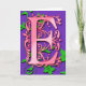 La letra E en una tarjeta elegantemente ornamental. Inmenso color rosa sobre un fondo violeta, con detalles verdes de follaje. Disponible en tarjetas de felicitación, boletines o postales. Sobres incluidos con saludo o carteles (sin sobres con postales), en blanco dentro. ¡Compra más y ahorra.