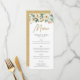 Cartas de menú o programas de boda para que su boda pueda hacer coincidir sus invitaciones florales en blanco y oro. El primer a tercer curso y las bebidas están incluidas para el personalizar. © Mini Impresiones Moi