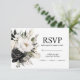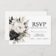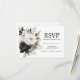 Estas hermosas tarjetas RSVP de boda incluyen un espacio para la selección de menús y opciones. Con flores negras y blancas.