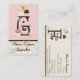 Carta G Tarjetas de visita Personalizado Monograma para tu quequito u otro negocio de panadería. ¡Dulce y Contemporáneo! El diseño de esta tarjeta de visita consta de tres quequitos pintados a mano con chocolate marrón y crema y rosa suave. ¡La carta monograma está en "chocolate" y atraerá a los amantes de los dulces por todas partes! El fondo es de una suave cáscara rosa con remolinos de color pastel sobre un acabado crema crujiente y una franja marrón chocolate. Este diseño es perfecto para su ducha de boda, ducha de novia o para negocios como coordinadores de bodas, planificadores de eventos, panaderías, pastelerías, diseñadores de pasteles caseros personalizados, servicios de cupakes especializados y más. Cada letra del alfabeto está disponible, si no ves lo que quieres, ¡sólo envíanos un correo electrónico!