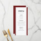 Carta moderna de menú simple marrón y boda blanco. Texto negro contemporáneo en funda inferior sobre fondo blanco con bordes laterales rayados de marrón. De vuelta es maroon. Para ajustar el diseño del menú específico, haga clic en Personalizar, Editar texto y, a continuación, arrastre las secciones de texto a las ubicaciones deseadas. Use Ctrl para seleccionar y mover varias secciones a la vez.