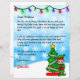 Agregue el nombre de su hijo a esta carta personalizada de Santa. Cuidados gráficos personalizados de un pequeño elfo de pie junto a un árbol de Navidad y una pagina de coloración extra en el reverso.