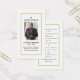 Recuerda a tu ser querido con este elegante tributo. Su imagen está situada en el centro del frente. En la memoria amorosa está escrito arriba y su nombre y fechas de vida están debajo. Tres líneas de texto permiten personalizar un homenaje único. En la parte trasera hay espacio para una oración o un salmo favoritos, un poema o un recuerdo especial. Tanto la parte delantera como la trasera están enmarcadas con un marco dorado.