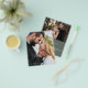 Boda de presupuesto Escrito a mano Gracias Tarjetas que tienen una foto en la parte delantera y trasera. Las tarjetas de agradecimiento contienen una moderna tipografía de escritura cursiva con letras blancas y negras que son elegantes, simples y modernas para usar después de la minimalista celebración del día de la boda.