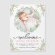 Hermosa corona de vegetación, tarjeta de anuncio de nacimiento con foto. Fácil de personalizar con las fotos y detalles de tu bebé. Por favor, contacte conmigo a través del chat si tiene preguntas sobre el trabajo artístico o necesita personalización. NOTA: Para obtener ayuda sobre pedidos, envío, información sobre productos, etc., póngase en contacto con el Servicio de Atención al Cliente de Zazzle directamente https://help.zazzle.com/hc/en-us/articles/221463567-How-Do-I-Contact-Zazzle-Customer-Support-.
