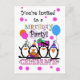 Cuatro tontos pingüinos ayudan a invitar a sus invitados al fiesta de las invitaciones de cumpleaños de Silly Penguins.