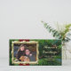 Añade tu foto y mensaje personalizado a este lujoso fondo de pino con marco dorado y tarjeta fotográfica de cinta roja profunda. La tarjeta perfecta para un retrato familiar, orientación horizontal.