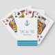 Elegante y clásico Boda de Ancla Náutica Jugando Cartas con un sencillo ancla de barco y un conjunto de rayas azul marino oscuro y turquesa. Estas tarjetas de boda con temática náutica se pueden personalizar fácilmente con los detalles de su boda. Para obtener más opciones de personalización, haga clic en el botón Personalizar.