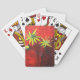 Flores amarillas sobre fondo rojo. Mi pintura de 2008 ahora jugando a las cartas.