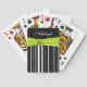 Muestra tu estilo y personalidad únicos con esta cubierta monogramada de tarjetas de la marca de bicicleta que juegan con un patrón de franjas verde limón, negro y blanco con una cinta IMPRESA, un medallón de botón IMPRESIONADO y puntos para añadir tu propio nombre, monograma, logotipo, iniciales u otro texto. Haría un gran regalo para la casa, un regalo para la fiesta de la boda o un fiesta o un favor de la boda.