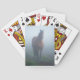 Baraja estándar de cartas con la foto de un caballo parado en la niebla.