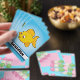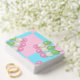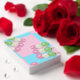 Se ha añadido al diseño "Dango Away" un fondo de cuadros azules y rosas que recuerda a los pétalos de Sakura flotando suavemente a través de un cielo primaveral fresco. La adición de una ligera sombra ayuda al dango a reaparecer. Cartas de póquer clásicas