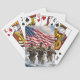 Banda de hermanos con la bandera de los Estados Unidos ondeando en el fondo. Imagen diseñada por mí con un generador de IA.