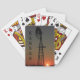 Una toma de una silueta de un molino de viento de Kansas con un atardecer colorido y brillante. Eso es al norte de Hutchinson Kansas USA en el país. Eso está en las cartas de juego.