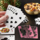 Esta impresionante baraja de cartas de juego está cubierta de hermosos remolinos góticos negros que se extienden como dedos de la oscuridad hasta el fondo rosado profundo. Está lleno de tonos diferentes y cuanto más lo mires, más parece que gire delante de tus ojos.