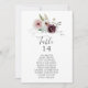 Estas tarjetas de cartas con el número de asientos de la mesa de romance floral son perfectas para una boda elegante. El moderno diseño rústico de boho cuenta con románticas flores acuáticas en tonos suaves de burdeos, malva, rosa y crema blanca con hojas verdes. La tarjeta se imprime en la parte delantera y trasera (doble cara).