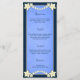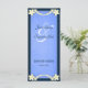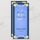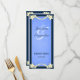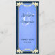 Floral azul rústico © Sunny Mars Designs. Personalizable pequeño personalizado formal vintage rubéola azul elegante de la recepción de la boda carta de la cena con el borde de la cinta azul oscuro, flores blancas de bonito modernas contra fondo de papel pergamino azul antiguo.
