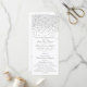 Cartas del programa de bodas de confeti de plata glam vintage.