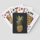 Esta cubierta de cartas de juego de frutas tiene un retrato muy simple de una piña marrón dorada y madura con hojas verdes sobre un fondo negro.