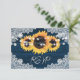 Tarjetas RSVP de boda rústicas, azul marino y girasol, con opciones de comida. Diseño perfecto de tarjetas para complementar tu rústico campo azul marino, o fiesta de bodas de granero. Elementos coincidentes disponibles.