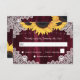 Románticas cartas RSVP de boda de girasol rústico. El diseño perfecto de las tarjetas para complementar la fiesta de bodas rústica de Borgoña inspirada en las flores de girasol. Elementos coincidentes disponibles.