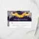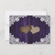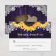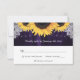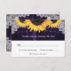 Estas tarjetas RSVP de color violeta y girasol tienen flores de girasol sobre un fondo de madera adornado con encajes florales blancos y luces de cuerdas. Diseño perfecto para su boda rústico morado inspirado en las flores de girasol. Elementos coincidentes disponibles.
