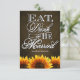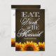 Las tarjetas RSVP de Country Rustic Sunflower Wedding - Comer bebidas y casarse con boda rústica RSVP - coinciden con las invitaciones y más abajo en esta página. Complifique su tema de boda de girasol con estas tarjetas RSVP que cuentan con una pizarra marrón como fondo con "Comer, beber y estar casados" en un guión divertido y elegante con girasoles vibrantes en la parte inferior de la parte delantera y trasera de cada tarjeta.