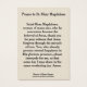 Santa María Magdalena es uno de los mayores santos de la Biblia. Su día de fiesta es el 22 de julio. Es la patrocinadora de la vida contemplativa, conversos, creadores de guantes, peluqueros, penitentes pecadores, gente ridiculizada por su piedad, perfusiones, farmacéuticos, curtidores y mujeres. ORAR a SAINT MARY MAGDALENE Santa María Magdalena, mujer de muchos pecados, que por conversión se hizo amada de Jesús, gracias por tu testimonio que Jesús perdona a través del milagro del amor. Vosotros, que ya poseéis la felicidad eterna en Su gloriosa presencia, por favor intercedáis por mí, para que algún día pueda compartir la misma alegría eterna. Amén.