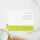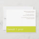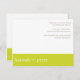 Tarjeta de agradecimiento contemporánea ColorScheme Boda Basics. Tarjetas planas de 4,25" x 5,5" con sobres blancos. Texto resaltado y un banner en el verano de 2011 chartreuse de color de tendencia contra un fondo blanco.
