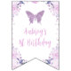 Pancarta de cumpleaños con la temática de la mariposa del Purpurina Purple Floral y la mariposa con la temática de la mariposa dulce con dos adorables acuarelas florales de color claro y una mariposa falsa purpurina púrpura. Esta pancarta de cumpleaños de mariposas dulces es una adorable adición para tu pequeña fiesta de cumpleaños con temática mariposa.