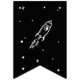 Diseño único, divertido, moderno y audaz astronauta de cumpleaños, fiesta de cumpleaños. La paleta de colores blanco y negro se utiliza para crear un tema de diseño simple pero audaz y llamativo de celebración de espacios de cumpleaños. El color dominante negro se utiliza para representar el espacio exterior profundo. En este divertido audaz diseño de cumpleaños de aventura espacial se incorporan dibujos de ilustracion de personalizados divertidos que incluyen cohetes espaciales, estrellas espaciales, meteoros, estrellas fugaces, astronautas y planetas espaciales. Personalizado con su propio nombre o mensaje.