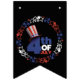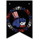 Este afiche muestra las palabras "4 de julio" mostrando un tipo de letra de letra extraído de las letras azules, rojas y blancas con un Gorra norteamericano en el número 4 de la redacción rodeado por una colección de estrellas de cinco estrellas rojas, blancas y azules en este tema del 4 de julio, Día de la Independencia. Todos los banners tienen una caja fuerte al aire libre de impresión a un solo lado y hecha con gruesa cuerda de plástico tiene (16) banderas de 5.5" x 8" en una cuerda de 6' de largo.