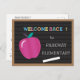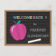 Esta es una postal especial de la tarjeta falsa para dar la bienvenida a sus estudiantes en el campus de aprendizaje este año. La parte delantera tiene letras de colores y una manzana rosa con puntos de polka y una tiza y un lugar para añadir el nombre de tu escuela. En la parte posterior, modifique el texto según sus propias necesidades o sustitúyalo por completo. © ArianeC Ilustraciones-Todos los derechos reservados