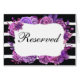 Cartel reservado de flores moradas. Boda a rayas