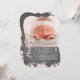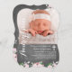 Esta tarjeta fotográfica Invitación al Bautismo presenta un diseño elegante de peonías rosas blandas, una cruz de encaje, fondo de pizarra y el nombre de su hijo en una fuente de escritura bonito.
