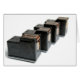 Cartuchos de tinta vacíos ordenados sobre un fondo blanco.