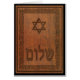 Features a computer-generated "wood carving" of a Magen David (Star of David), text reading "Shalom" and a floral border.