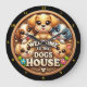 Este adorable reloj cuenta con cinco felices cachorros y la acogedora frase "BIENVENIDOS A LA CASA DEL PERRO". Perfecto para los amantes del perro, este reloj de pared único le da un toque de encanto a cualquier habitación. Ideal para casas con mascotas o como regalo para el dueño de un perro.