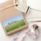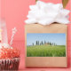 Pegatina fotográfico rectangular con una casa de campo con cipreses y granos de trigo ondulados en primavera en el valle Val d'Orcia en la Toscana, Italia.