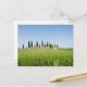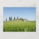 Postal de una casa de campo con cipreses y granos de trigo ondulados en primavera en el valle Val d'Orcia en la Toscana, Italia.