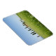 Imán fotográfico rectangular de recuerdo con una casa de campo con cipreses y granos de trigo ondulados en primavera en el valle Val d'Orcia en la Toscana, Italia.
