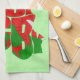 Casa de Gales con toalla de té de rubí. Diseño tipográfico de caligrafía de un mapa de Gales hecho de las palabras 'Hogar de Rugby', y una fresca y ondulada bandera galesa dentro de las palabras.