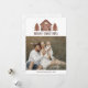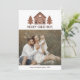 Tarjeta fotográfica navideña con una casa de jengibre con dos árboles de jengibre decorados con escarcha blanca. ¡Agrega una foto de tu familia!