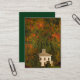 Esta tarjeta de intercambio de artistas presenta una magnífica escena del otoño. Una pequeña casa blanca de Nueva Inglaterra con una cúpula se esconde a los pies de una colina que exhibe gloriosa follaje de otoño con árboles y hojas en colores rojo, naranja, amarillo, dorado y verde.