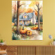 Celebra la temporada con una impresión de la casa de arte popular de otoño. Añada un encanto cálido y rústico a su decoración casera con esta pieza atemporal.