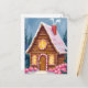 Casa de Pan de Jengibre Rosa Navidad Tarjeta de vacaciones