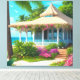 Casa de playa con vistas al océano, flores tropicales, palmeras, un hermoso jardín paisajista con gato dormido en el porche.